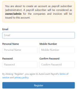 To register a free AutoCount HRMS (Human Resources Management System, previously known as AutoCount Payroll) account, follow these steps: