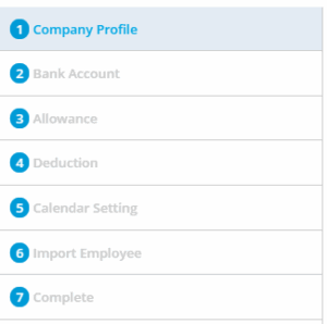 - You will be directed to a setup wizard to complete your company information before starting. We recommend completing it now, but you can choose to skip each step to explore the interface first. On your next login, the system will prompt you to finish the wizard again. These are all the steps needed to register for a free trial account for AutoCount HRMS.