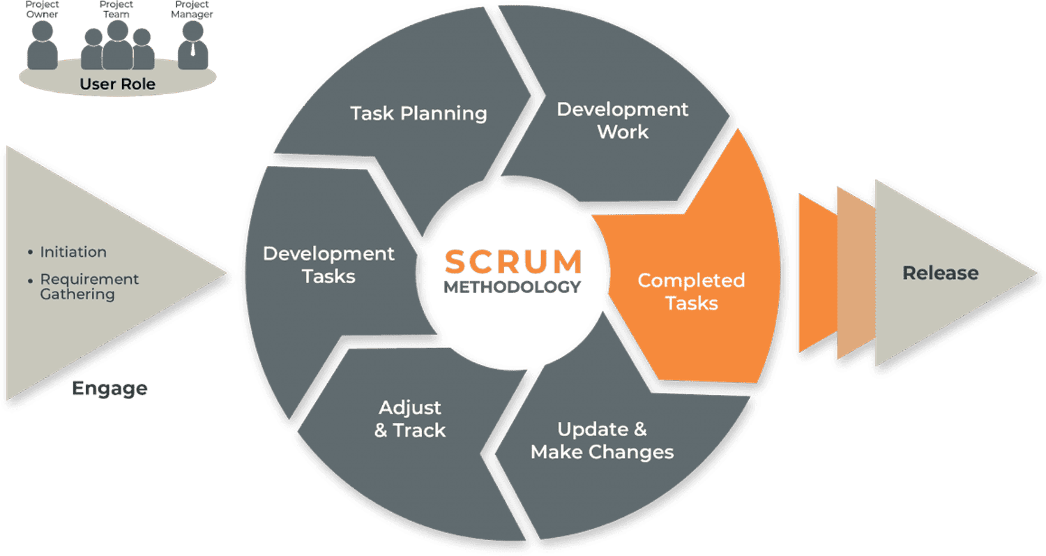 For software development within a project, iDynamics adopts Scrum methodology which is a framework that follows the agile process and principles, allowing teams to focus on delivering quality business value in the shortest time possible. This approach encourages teams to rapidly and repeatedly inspect working software to ensure they’re only providing the best quality products for their clients, emphasizing accountability, teamwork, and iterative progress towards a well-defined goal.